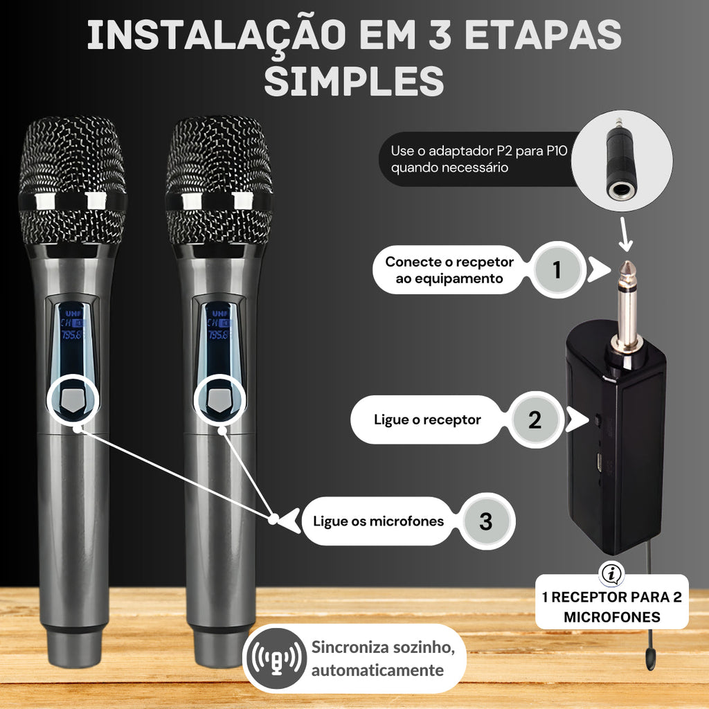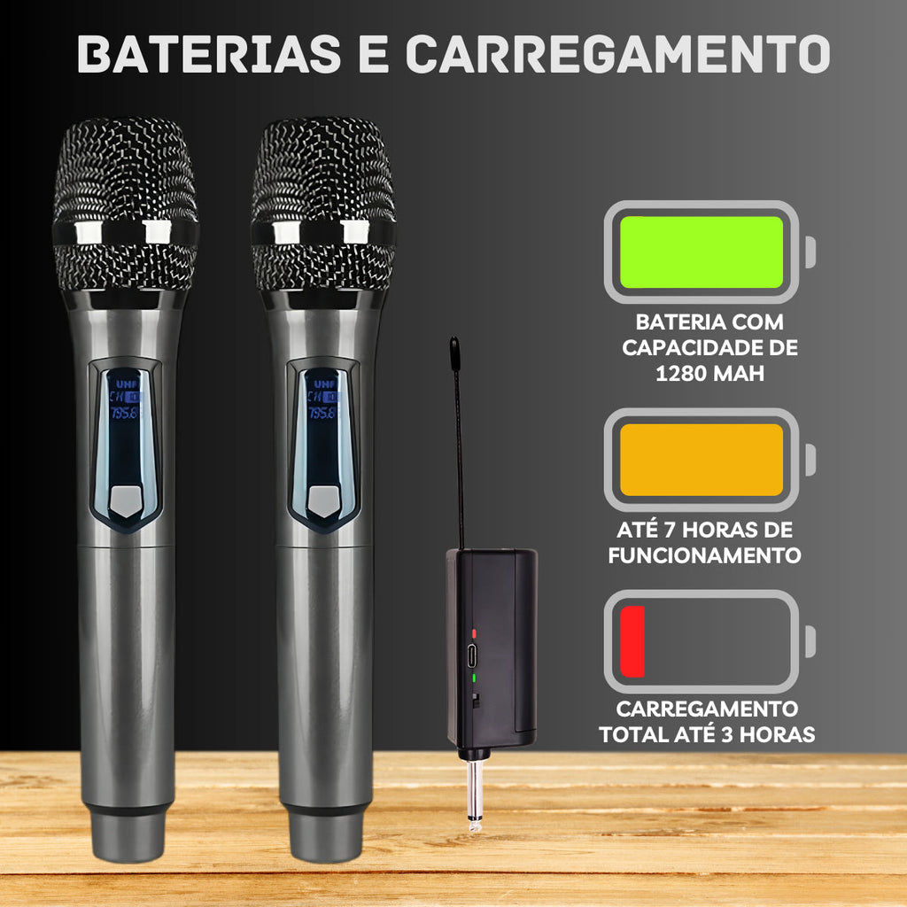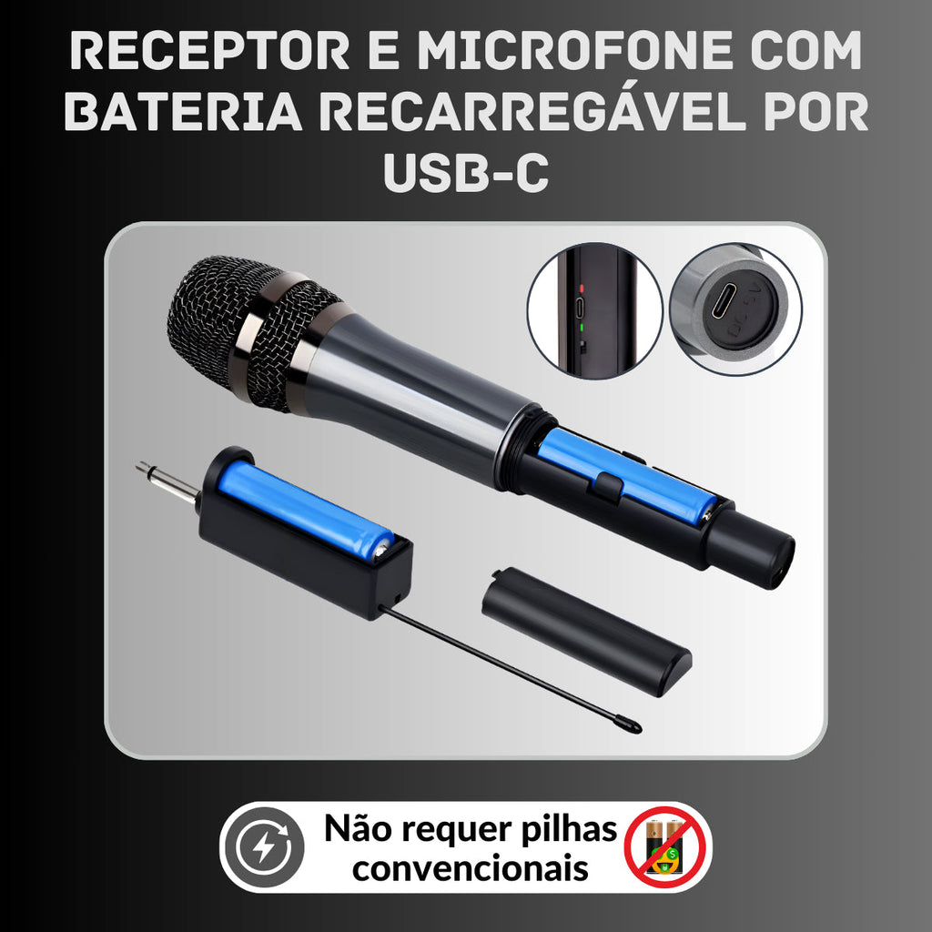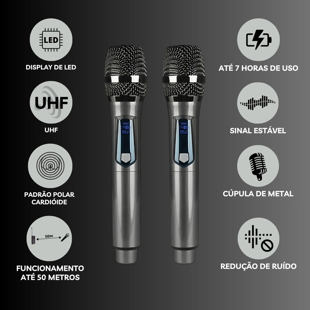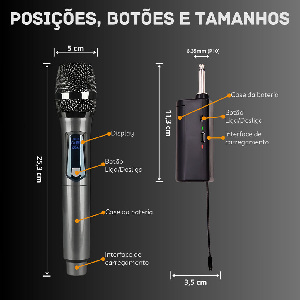 - Tecnologia UHF: Sinal forte e estável, livre de ruídos e microfonia