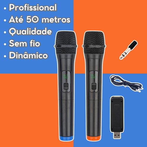 - Duplo canal: Dois microfones em um único receptor, perfeito para duetos, apresentações em dupla e uso simultâneo
