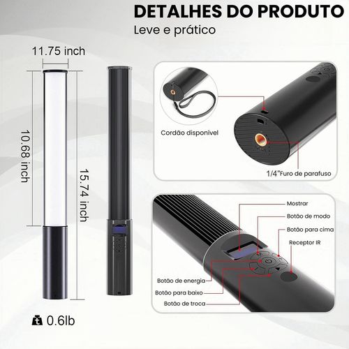 Bastão LED RGB Profissional Portátil